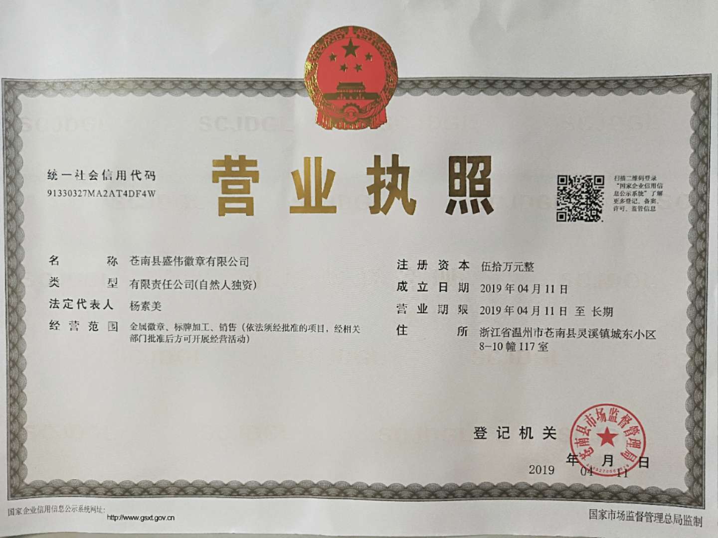蒼南縣盛偉徽章有限公司成立于2019年,是一家專注于警徽產(chǎn)品設(shè)計、、銷售和產(chǎn)品維護的徽章廠家。多年來,我們一直嚴格要求自己,以優(yōu)良產(chǎn)品和誠信為本的理念經(jīng)營,不斷推動企業(yè)的發(fā)展壯大。我們注重人才培養(yǎng),不斷引進先進的經(jīng)營理念和管理模式,以滿足企業(yè)長期發(fā)展和擴大的需求。